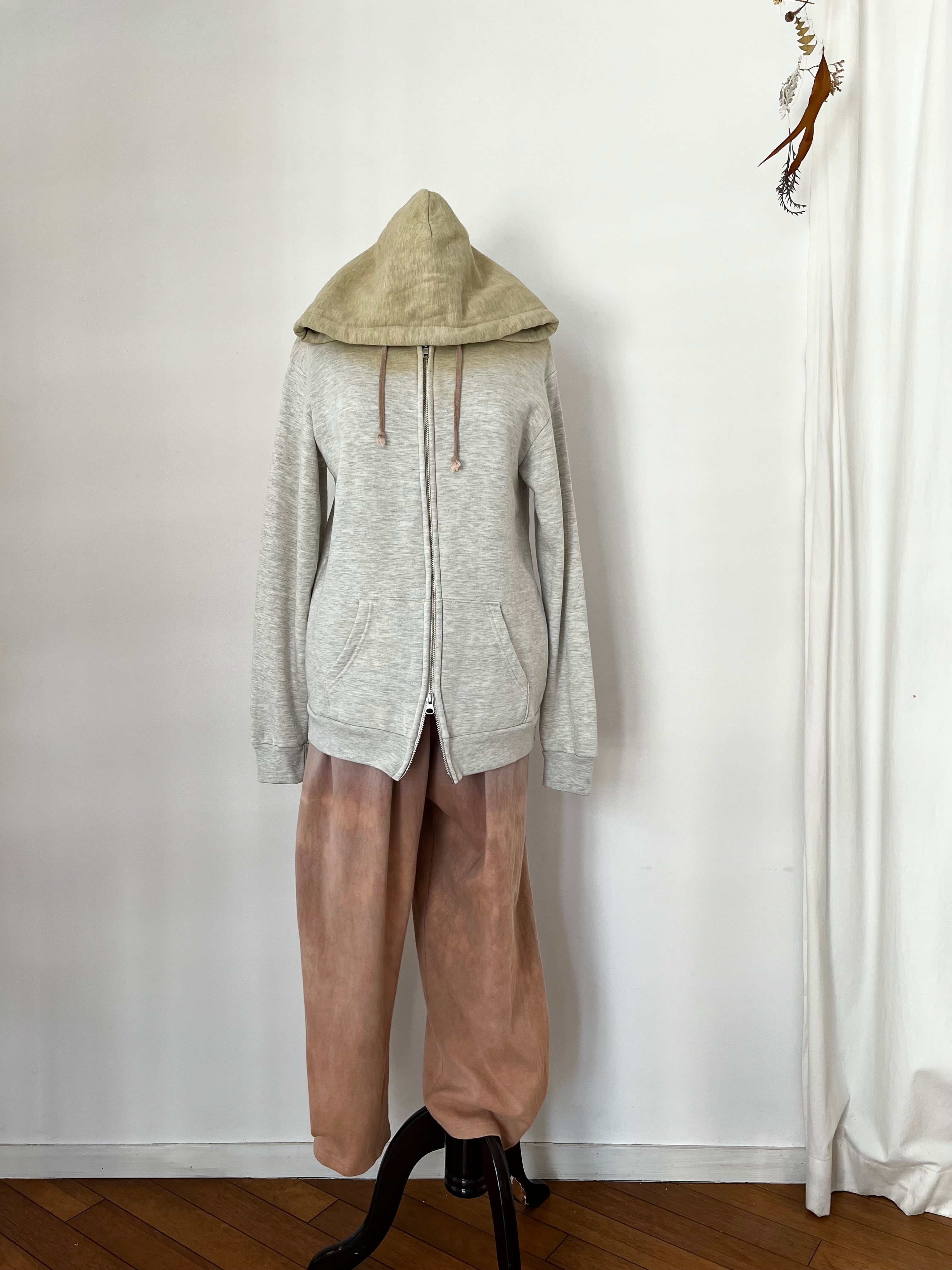 土から取れた染料(ベンガラ)で染めたパーカーです。